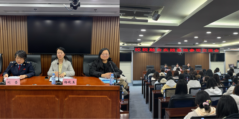 讲解结束后,师生跟随工作人员来到八楼会议室,参加“校税融合实践基地参观会”。让胡路局一分局局长刘莹以行业鲜活案例为引,阐释了诚信纳税对市场主体存续、社会信用体系构建的核心价值,鼓励学生以专业素养践行税法遵从。杨晓玉教授表示,经济管理学院将以此次活动为契机,推动税收法规、信用管理等内容深度融入课程体系,培育学生的法治意识与社会责任感。税务部门也期待与经济管理学院建立长效合作,通过“教育一个学生、带动一个家庭、影响整个社会”的模式,助力诚信纳税生态构建。
