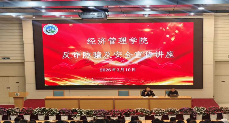为深入贯彻落实总体国家安全观,切实筑牢校园安全防线,经济管理学院于2026年3月10日召开反诈防骗及安全宣讲讲座。本次讲座特邀学校保卫处盖立庆处长主讲,党总支副书记陈超出席,全体辅导员老师及学生共同参会,用“以案释法、以例警人”的方式,将安全知识转化为师生可理解、可践行的行动准则。