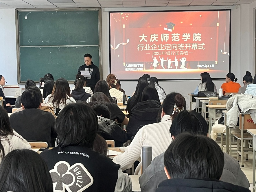 2025年11月6日下午,大庆师范学院主楼305教室隆重举行2025年“银行证券班”启动仪式。本次活动由学校招生就业处、经济管理学院、创新创业学院联合主办,经济管理学院书记兼行政负责人刘楠教授、就业创业教育教研室何超主任、经济与金融专业负责人王植荔副教授、数字金融教研室主任王盼博士及多位专业课教师共同出席,与全体银行证券班学员共启新程。