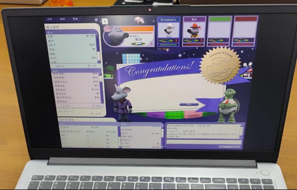 活动现场氛围热烈而有序,各小组社员围绕市场动态、交易策略展开激烈讨论。各小组成员分工明确,团体协作,每一笔交易决策都凝聚着集体的智慧与考量。大家在盈利时相互分享精准判断的经验,在失误时共同复盘问题所在,迅速调整策略重新出发,形成了“实践—反思—提升”的良好互动氛围。经过多轮紧张刺激的交易角逐,多数小组成功实现虚拟资产翻倍,不仅熟练掌握了现金流游戏的基础交易规则,更在实践中对供需关系等金融规律有了深刻且鲜活的体会。